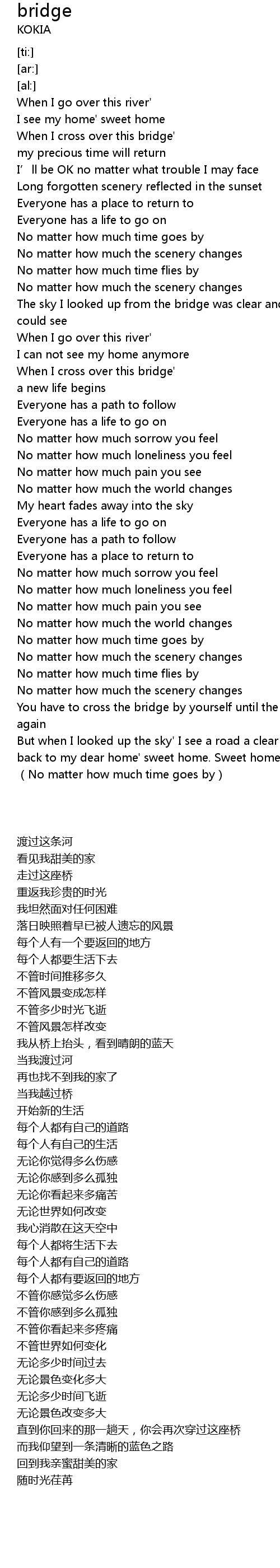 | [05:01.29] | You have to cross the bridge by yourself until the day you return again |