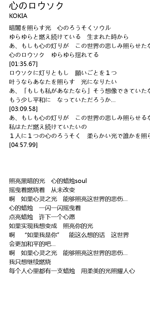 | [00:29.89] | 暗闇を照らす光 心のろうそくソウル |