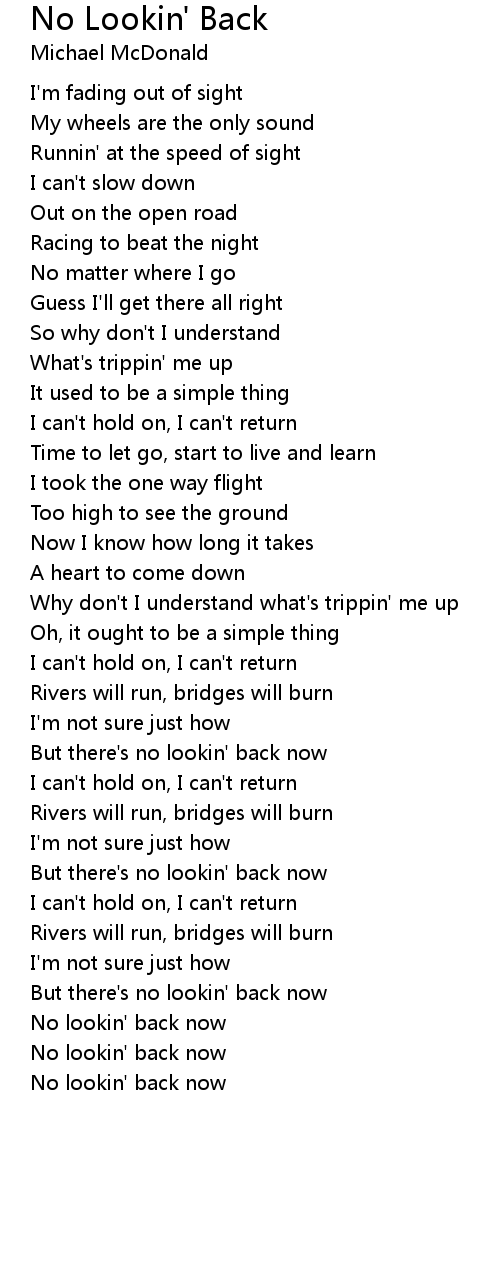 But there's no lookin' back now |