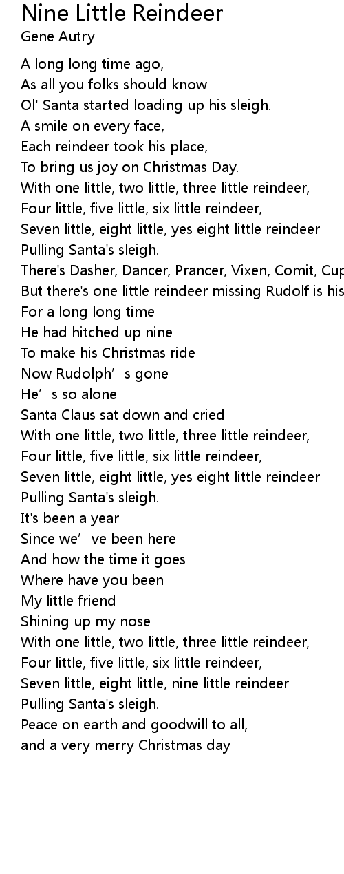 | But there' s one little reindeer missing Rudolf is his name. | |