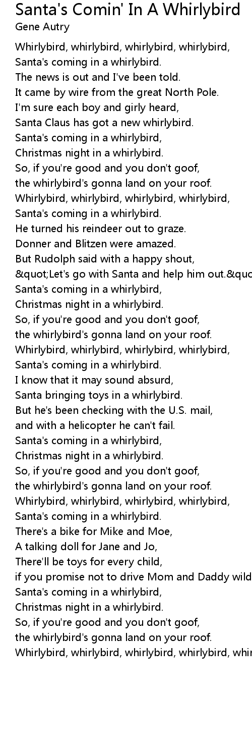 Whirlybird, whirlybird, whirlybird, whirlybird,