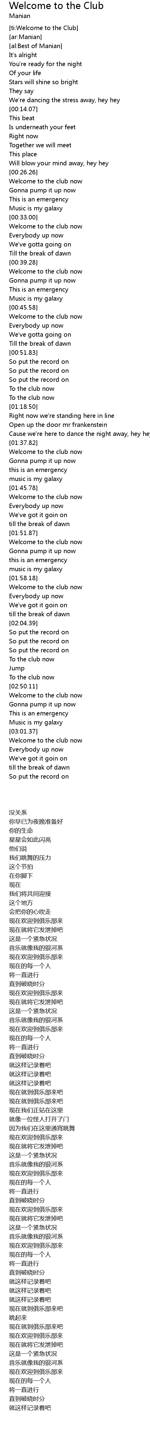 [ti:Welcome to the Club]