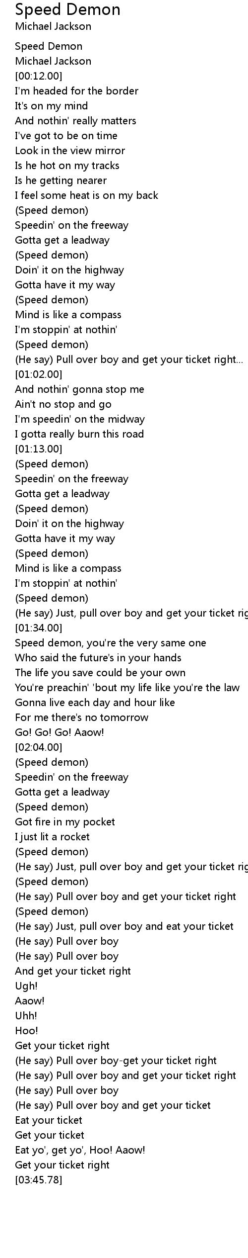 Speed demon, you're the very same one |