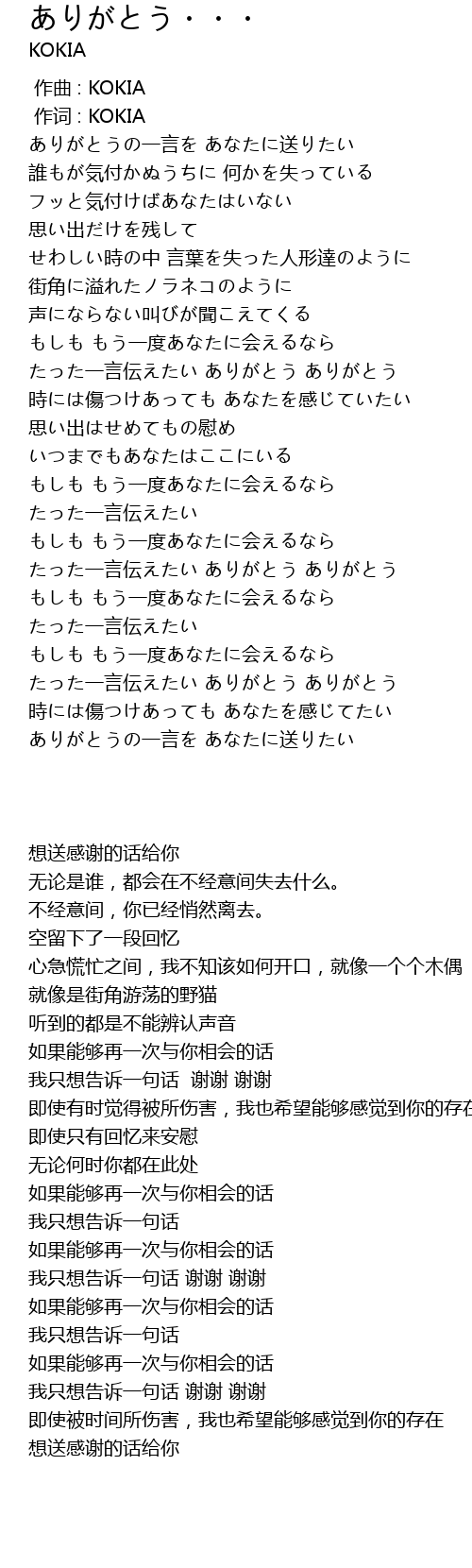 | [00:01.650] | ありがとうの一言を あなたに送りたい |