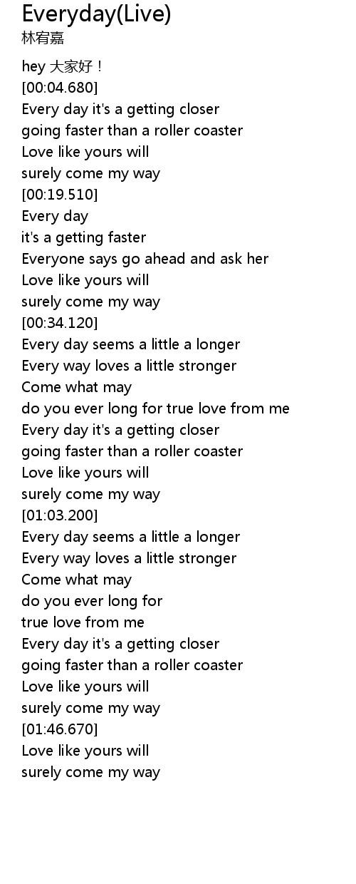 | [00:50.790] | Every day it' s a getting closer |