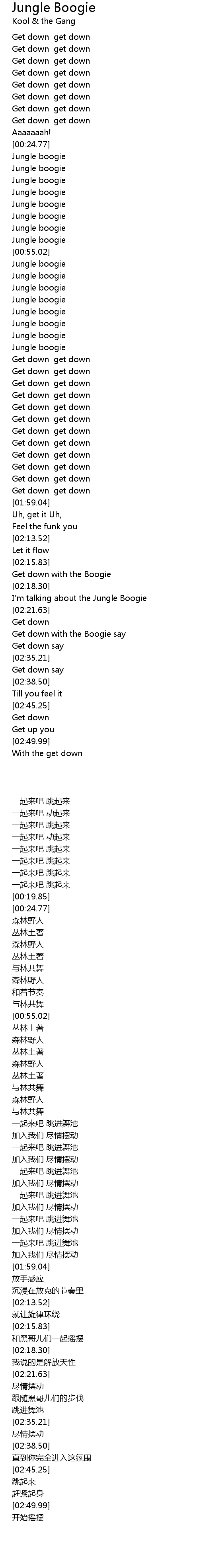 | [02:19.05] | I'm talking about the Jungle Boogie |