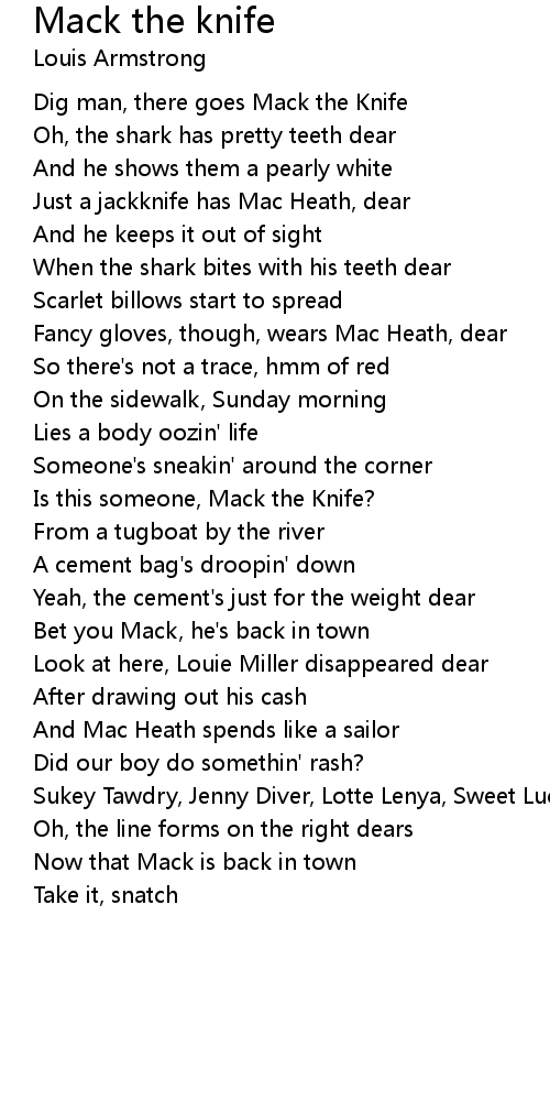 Sukey Tawdry, Jenny Diver, Lotte Lenya, Sweet Lucy Brown |