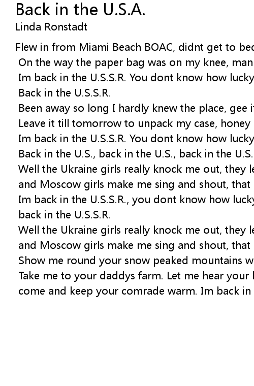 Back in the U.S., back in the U.S., back in the U.S.S.R. |