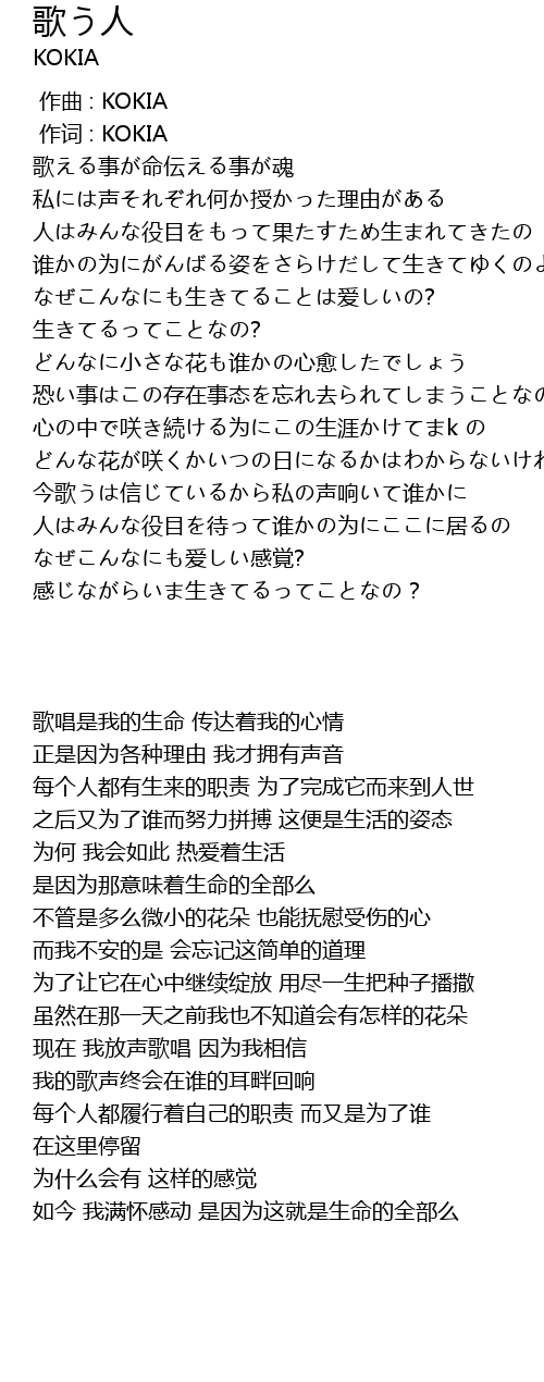 | [00:18.792] | 歌える事が命伝える事が魂 |