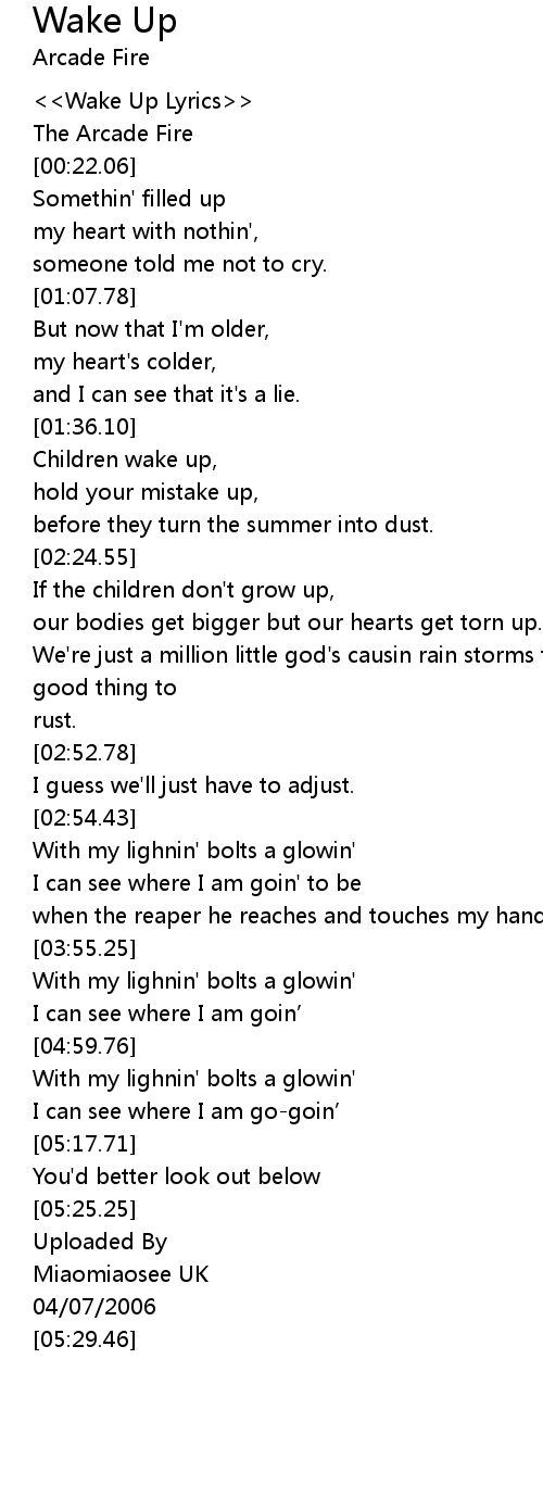 | [00:00.87] | <<Wake Up Lyrics>> |