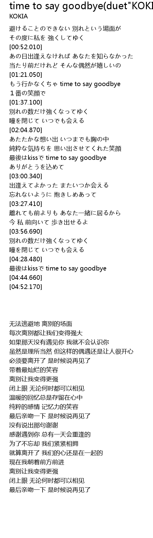 | Song | time to say goodbye(duet"KOKIA & Piano") |