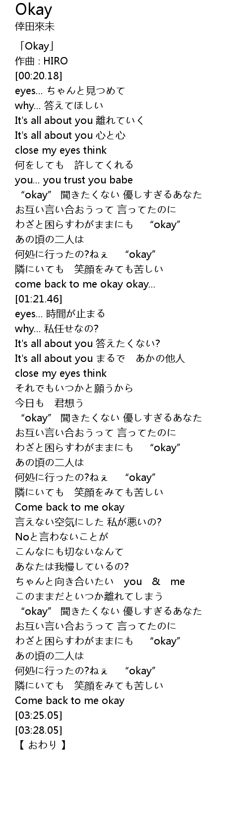 | [03:04.37] | わざと困らすわがままにも “okay” |