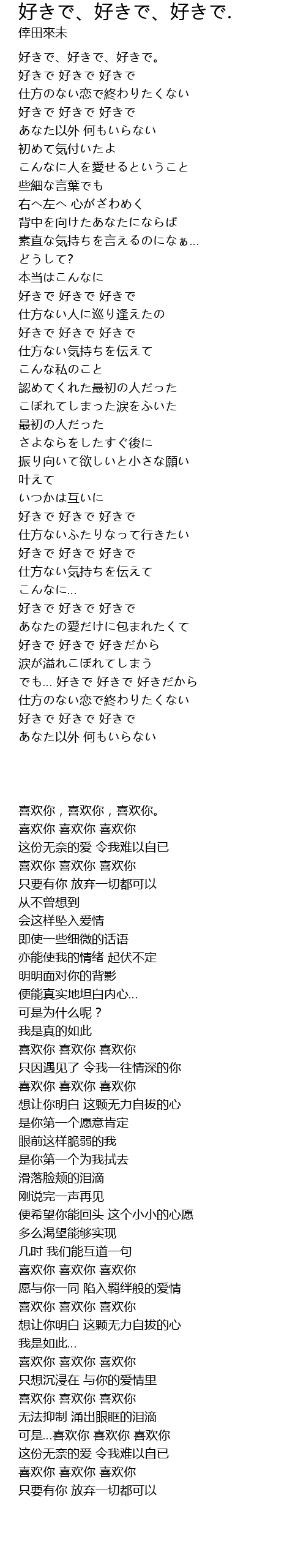 | [01:38.520] | 好きで 好きで 好きで |