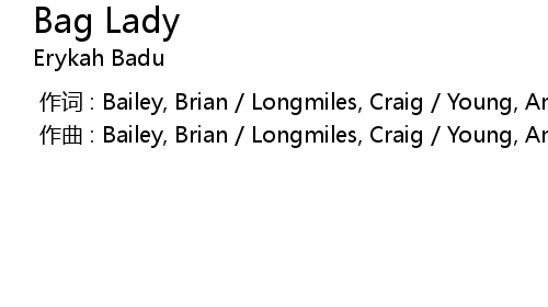 | [00:00.000] | 作曲 : Bailey, Brian / Longmiles, Craig / Young, Andre Romell |