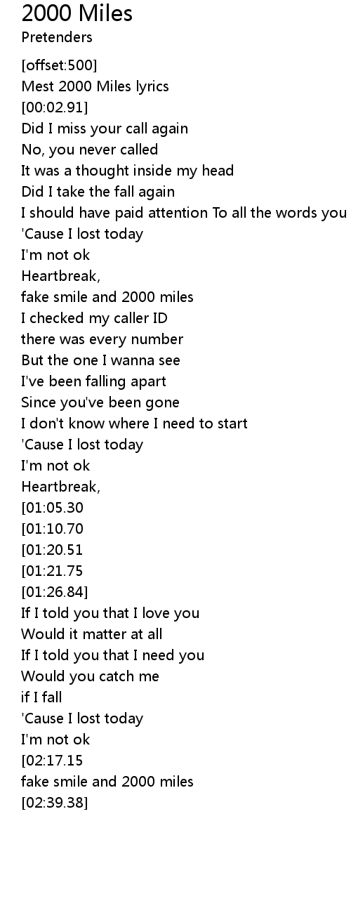 Mest 2000 Miles lyrics |