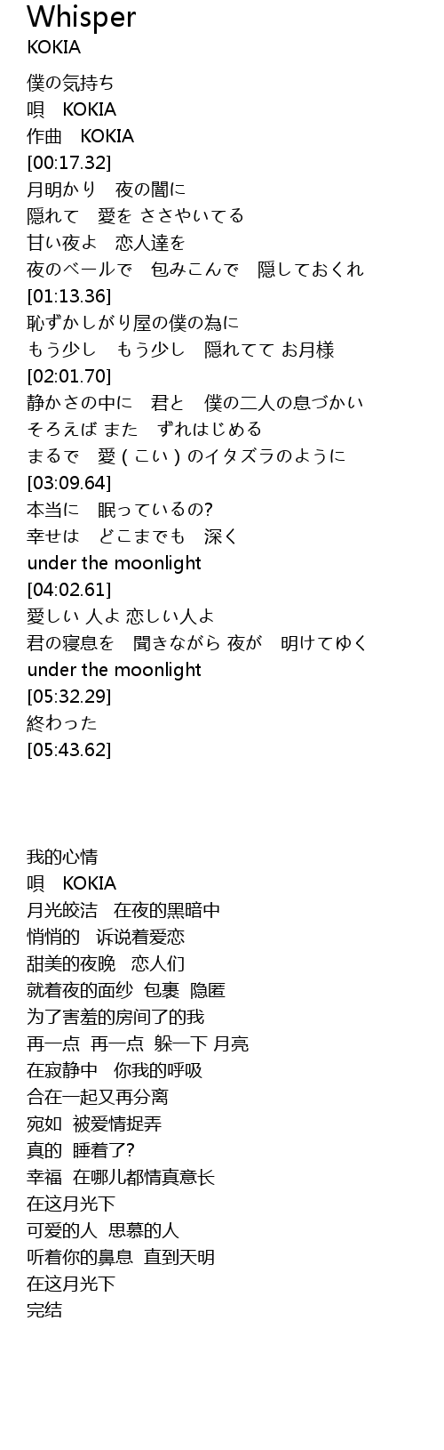 | [00:15.67] | zuo qu KOKIA |