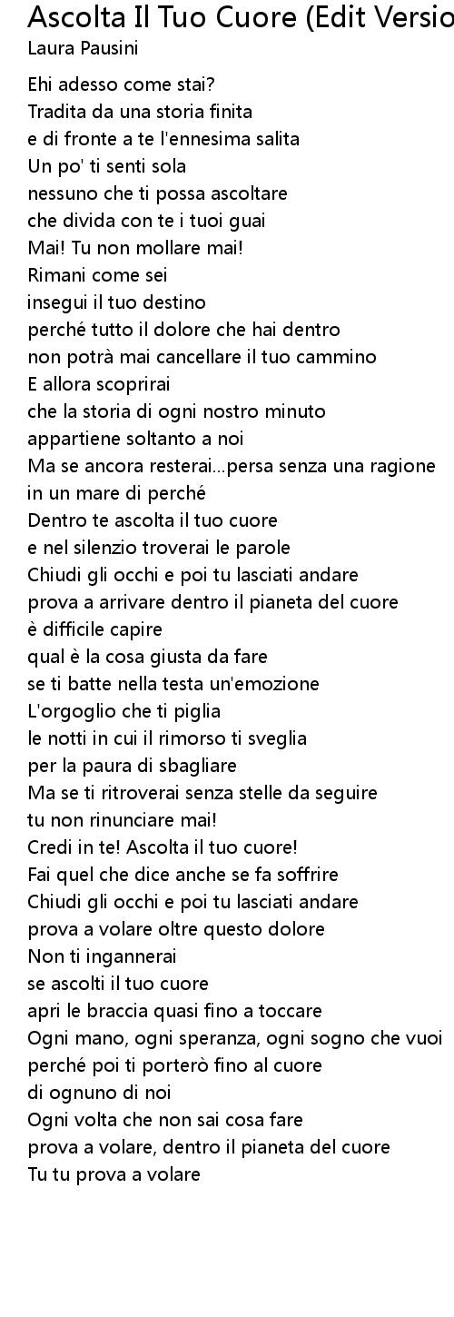 | Song | Ascolta Il Tuo Cuore (Edit Version) |