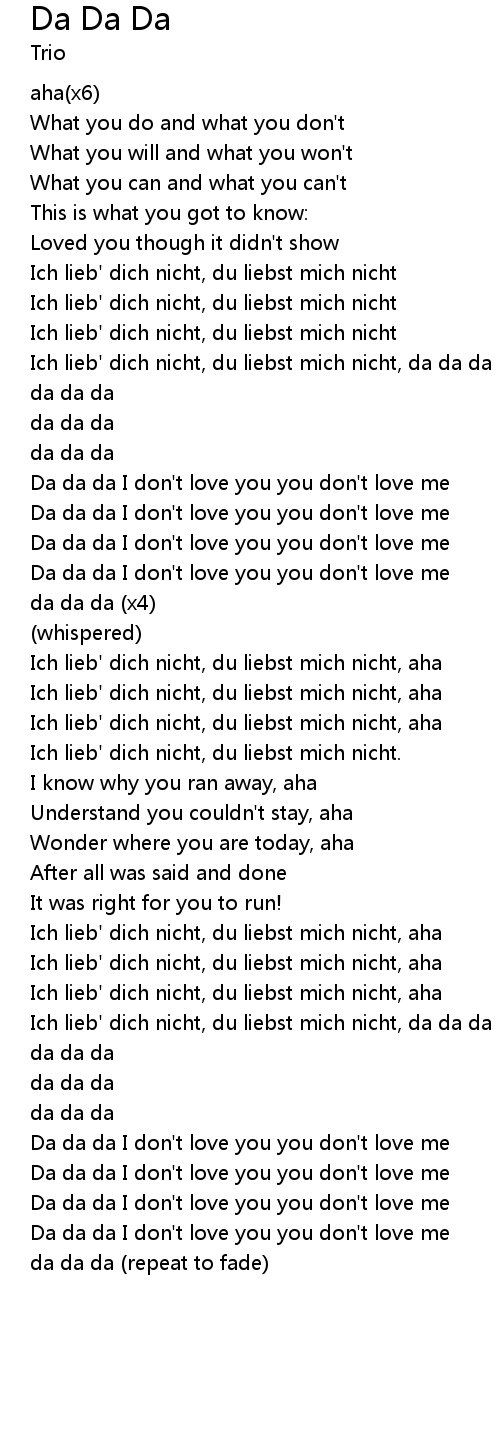 Ich lieb' dich nicht, du liebst mich nicht, da da da |