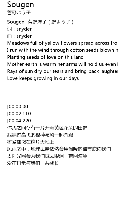 | [00:00.00] | Sougen -菅野洋子(野よう子) |