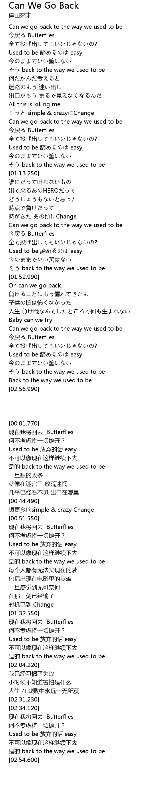 | [00:54.340] | 今戻る Butterflies |