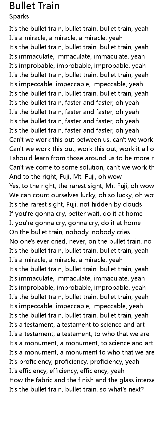 | It's the bullet train, bullet train, bullet train, yeah | |