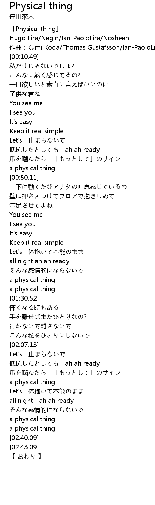 | [00:00.49] | 「Physical thing」 |