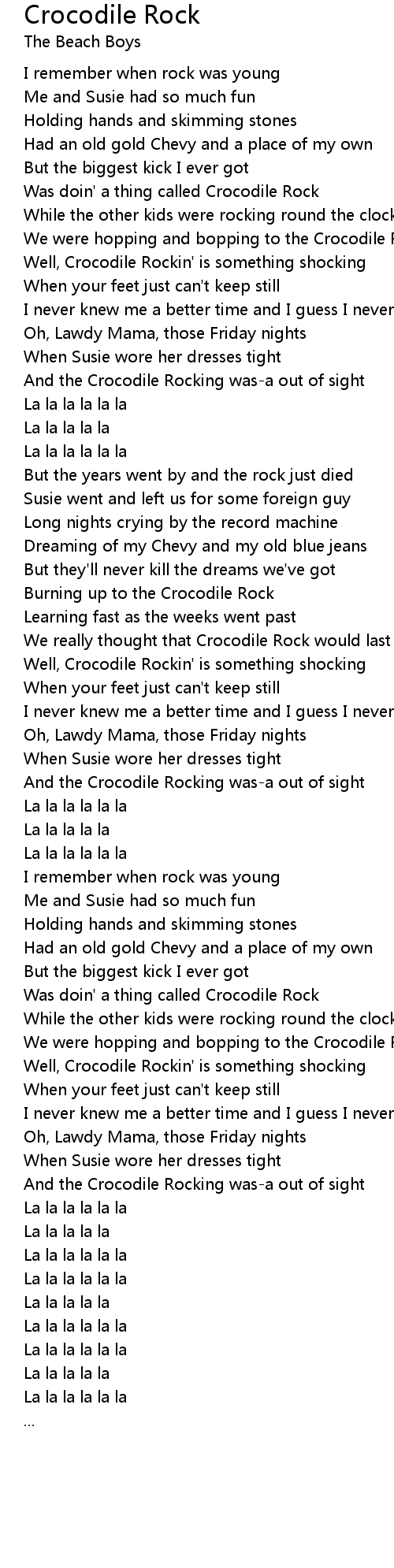 Well, Crocodile Rockin' is something shocking |