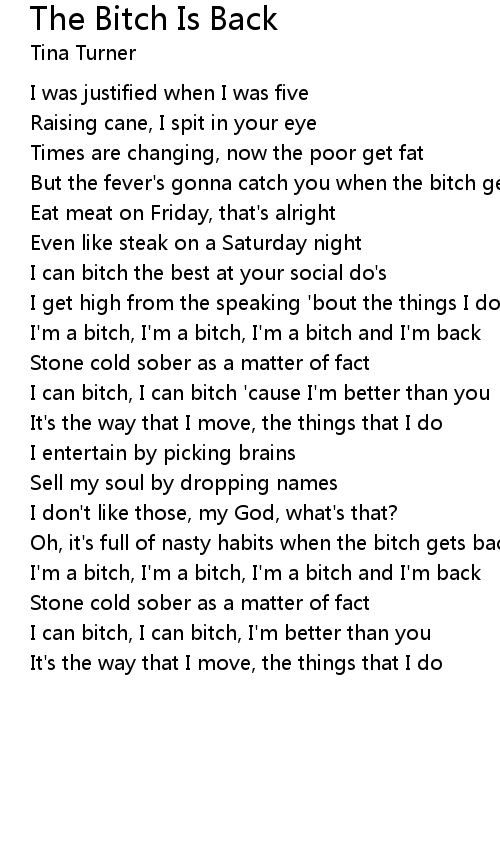 I'm a bitch, I'm a bitch, I'm a bitch and I'm back |