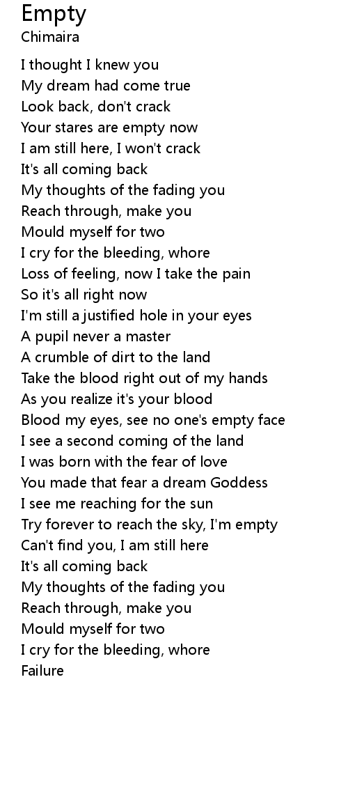 Blood my eyes, see no one's empty face |