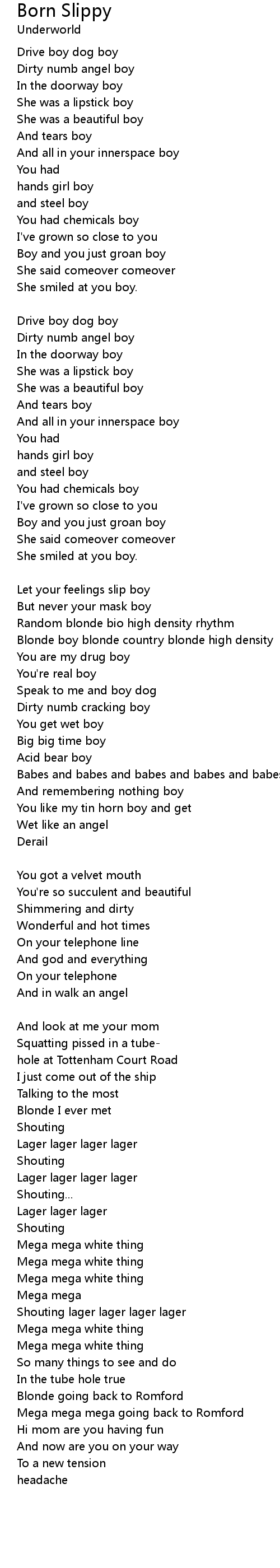 Born Slippy Lyrics