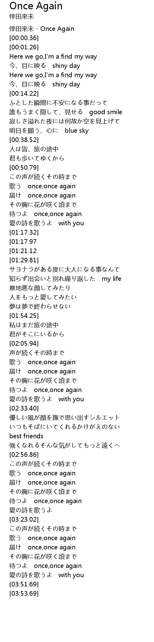 | [00:00.06] | 倖田來未 - Once Again |