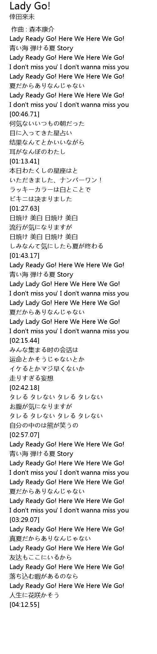 | [03:56.46] | Lady Ready Go! Here We Here We Go! |
