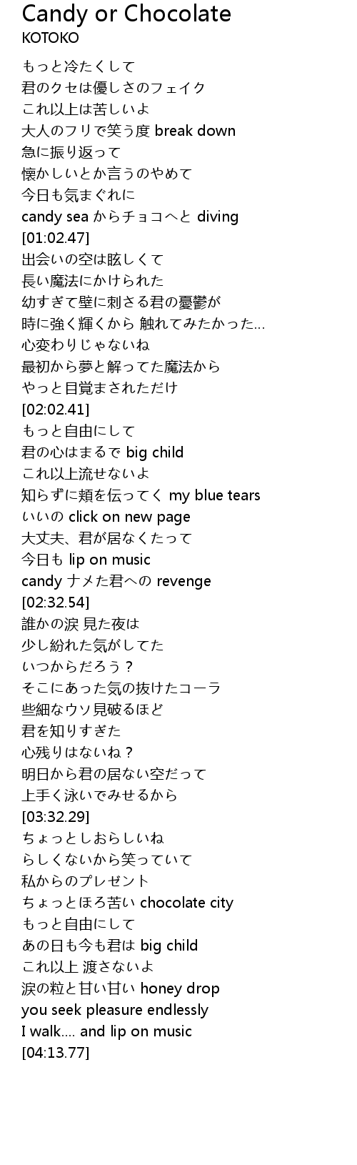 | [03:42.93] | ちょっとほろ苦い chocolate city |