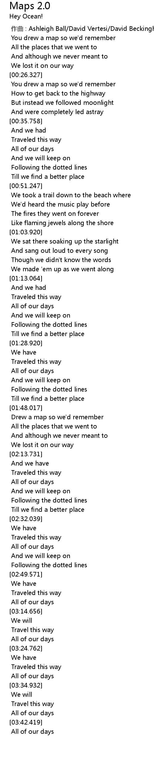 | [02:05.124] | Drew a map so we' d remember |