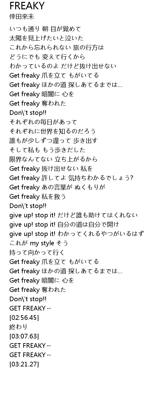 | [01:39.22] | Get freaky 抜け出せない 私を |