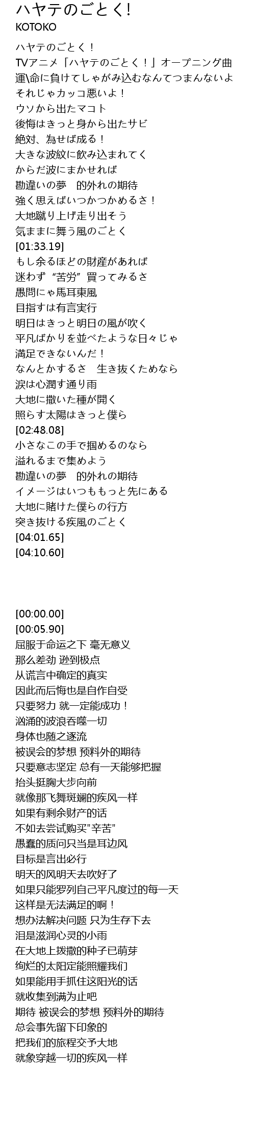 | [00:05.90] | TVアニメ「ハヤテのごとく!」オープニング曲 |