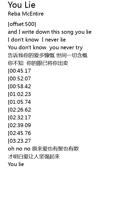 | [00:08.49] | and I write down this song you lie |