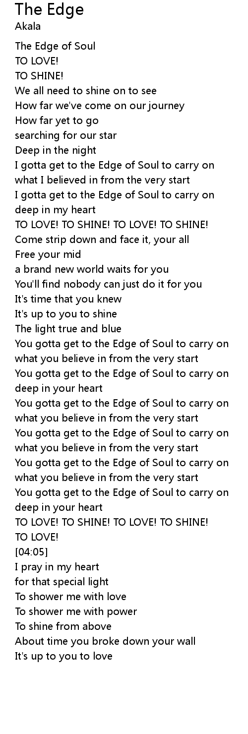 I gotta get to the Edge of Soul to carry on |