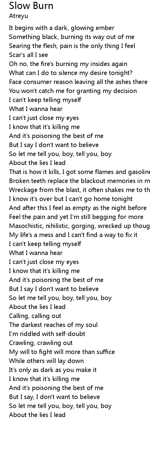 Oh no, the fire's burning my insides again |