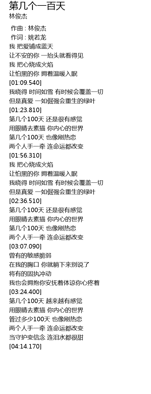 | [03:31.790] | 第几个100天 越来越有感觉 |