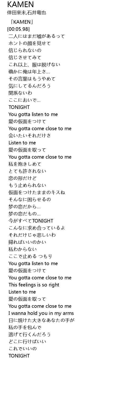 | [00:03.60] | 「KAMEN」 |