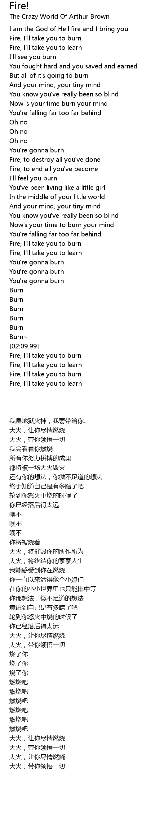 Fire, I'll take you to burn |
