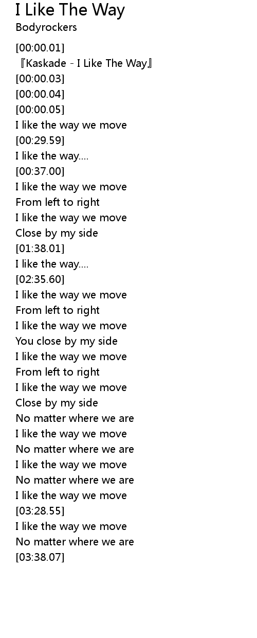 | [00:00.02] | 『Kaskade - I Like The Way』 |