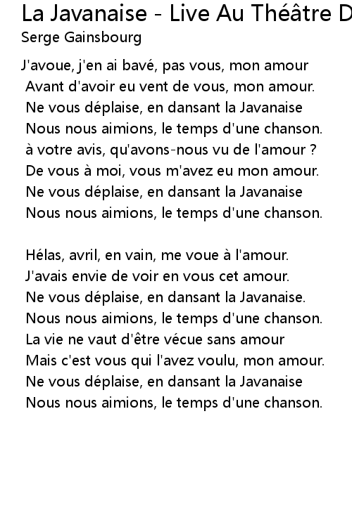 | Song | La Javanaise - Live Au Théâtre Des Capucines / 1963 |