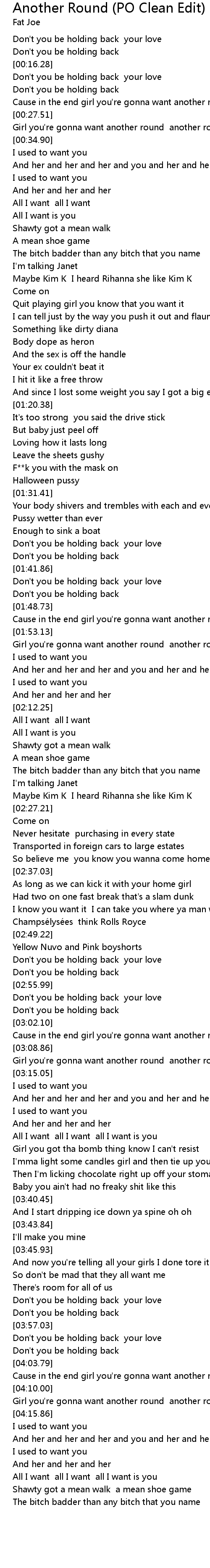 | [04:11.49] | Girl you're gonna want another round another round |