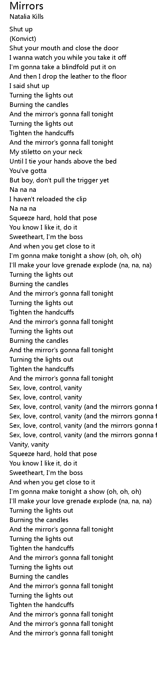 And the mirror's gonna fall tonight |