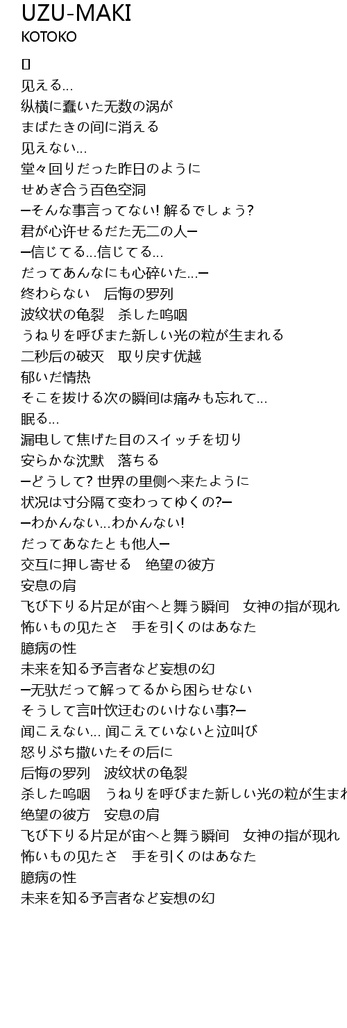| 杀した呜咽 うねりを呼びまた新しい光の粒が生まれる | |