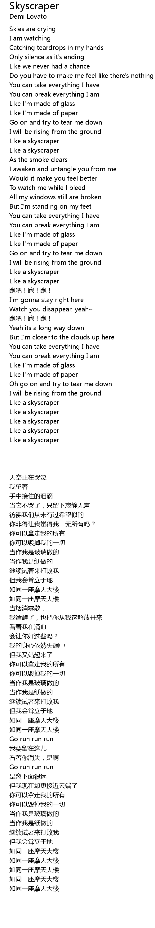 | Song | Skyscraper |