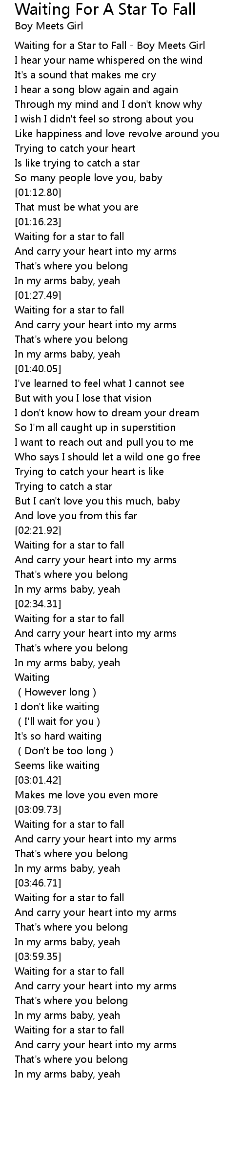 | [00:01.73] | Waiting for a Star to Fall Boy Meets Girl |
