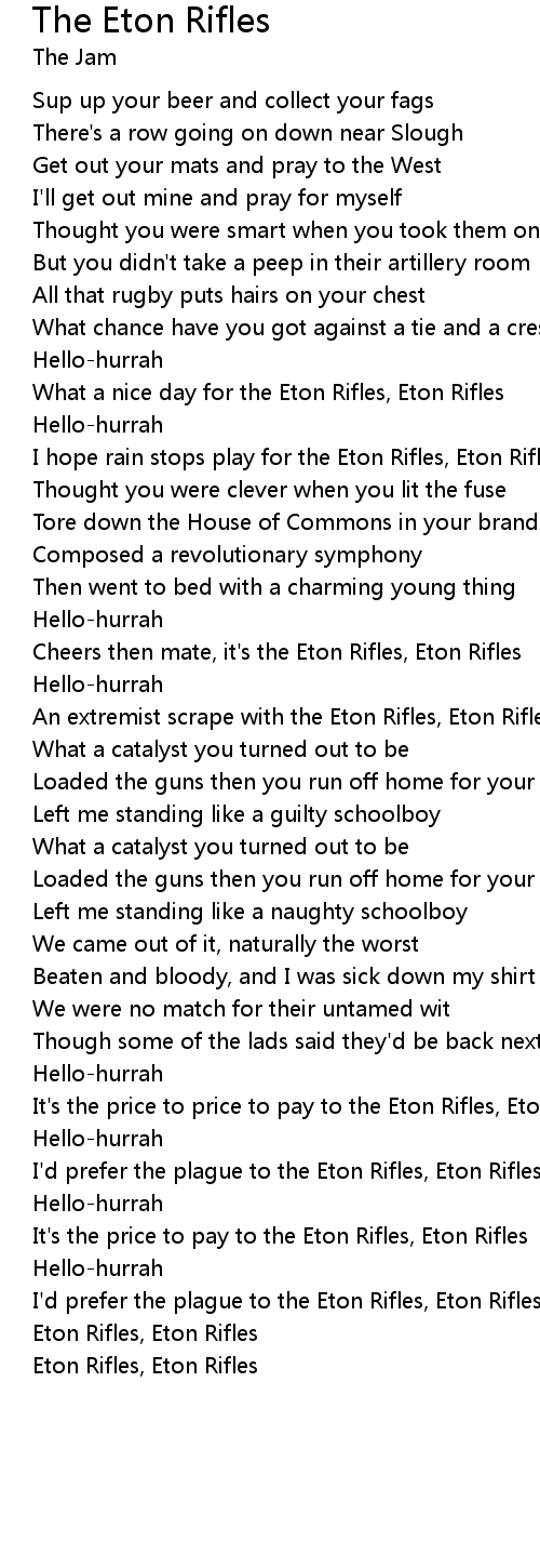 Cheers then mate, it's the Eton Rifles, Eton Rifles |